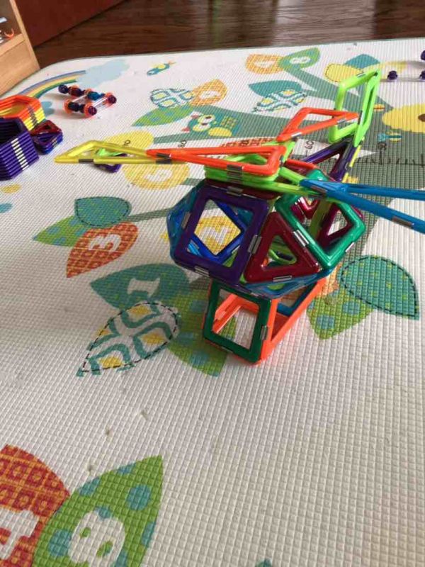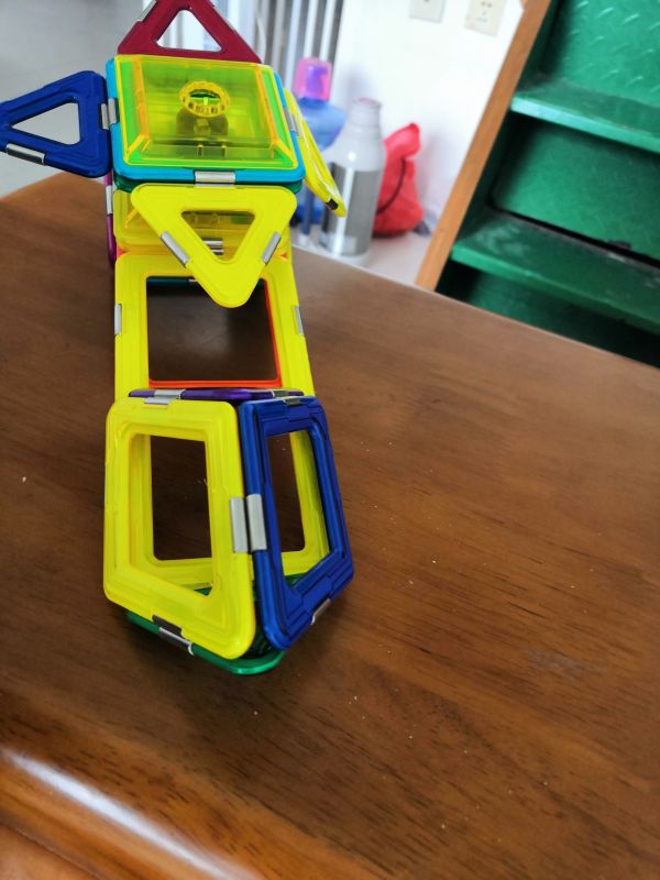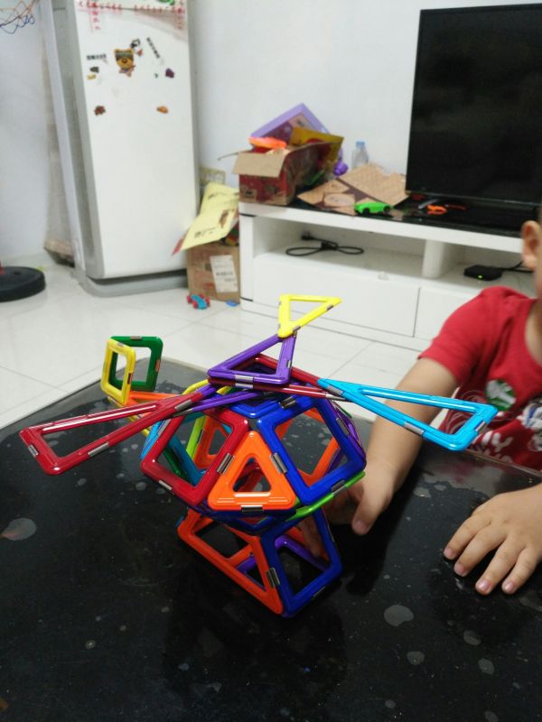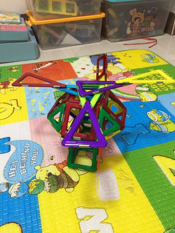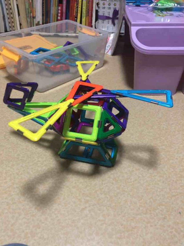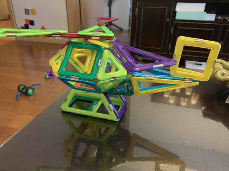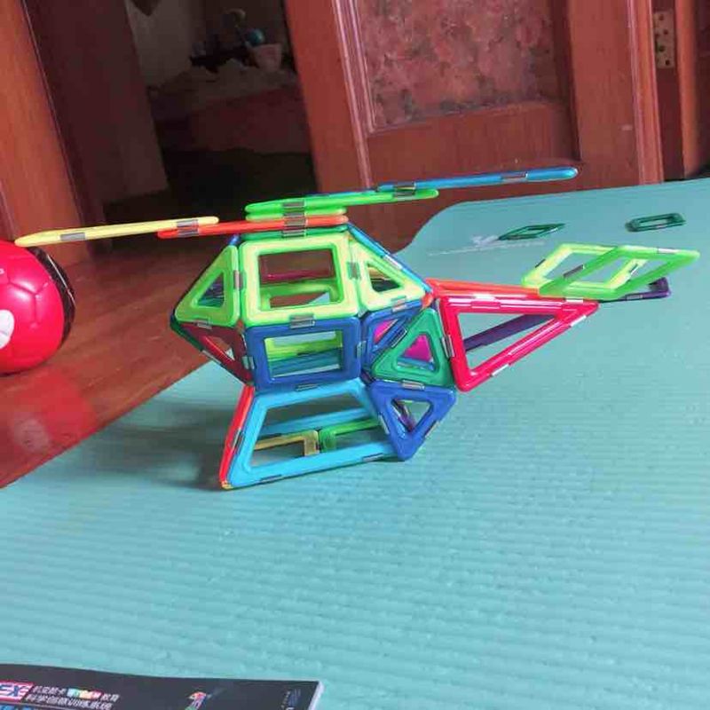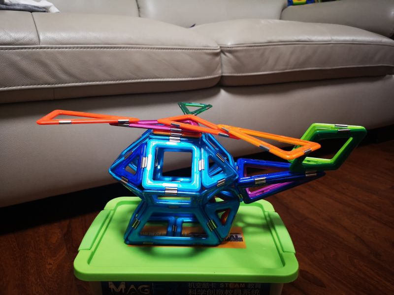 又搭了一个直升飞机,难度有提升,不过大宝没有放弃,在大人帮助下坚持完成了,既锻炼了脑力又锻炼了意志品质。