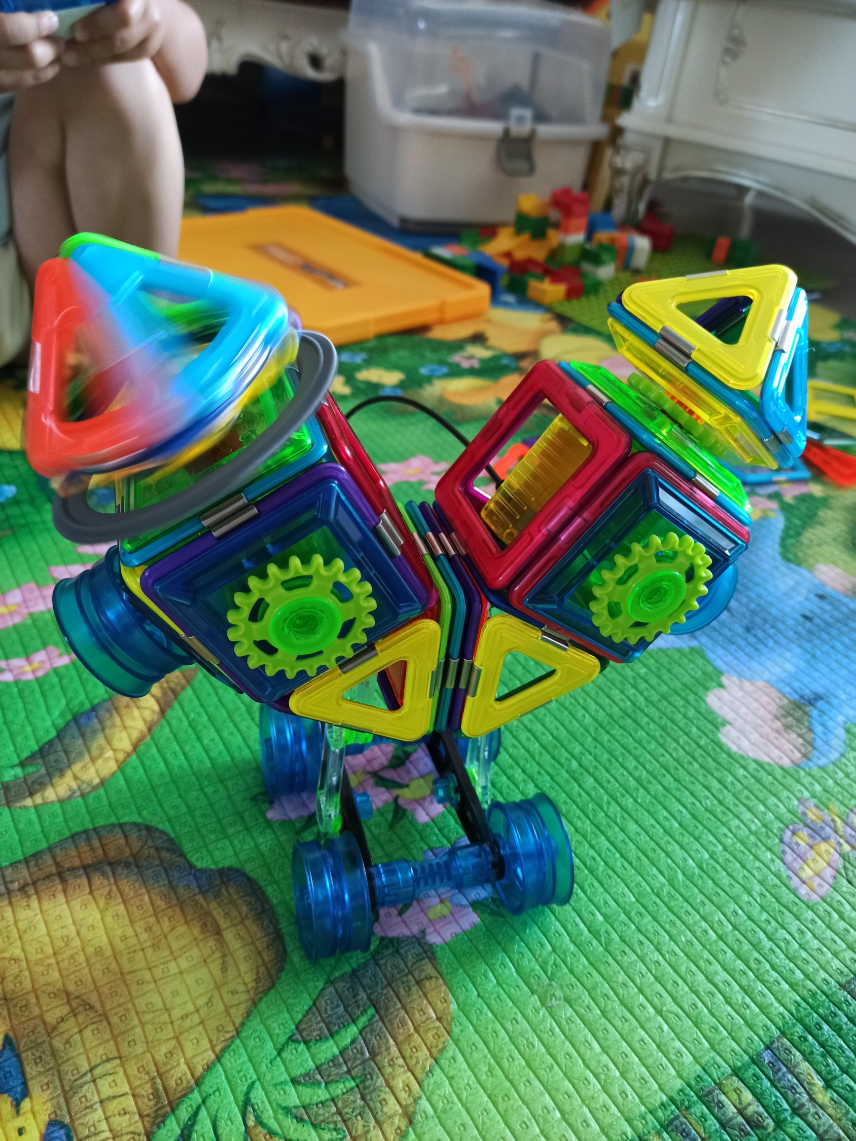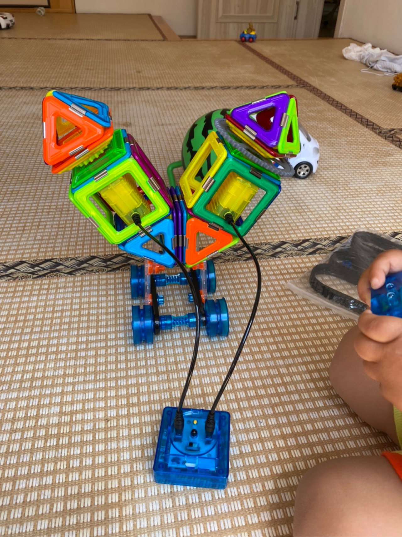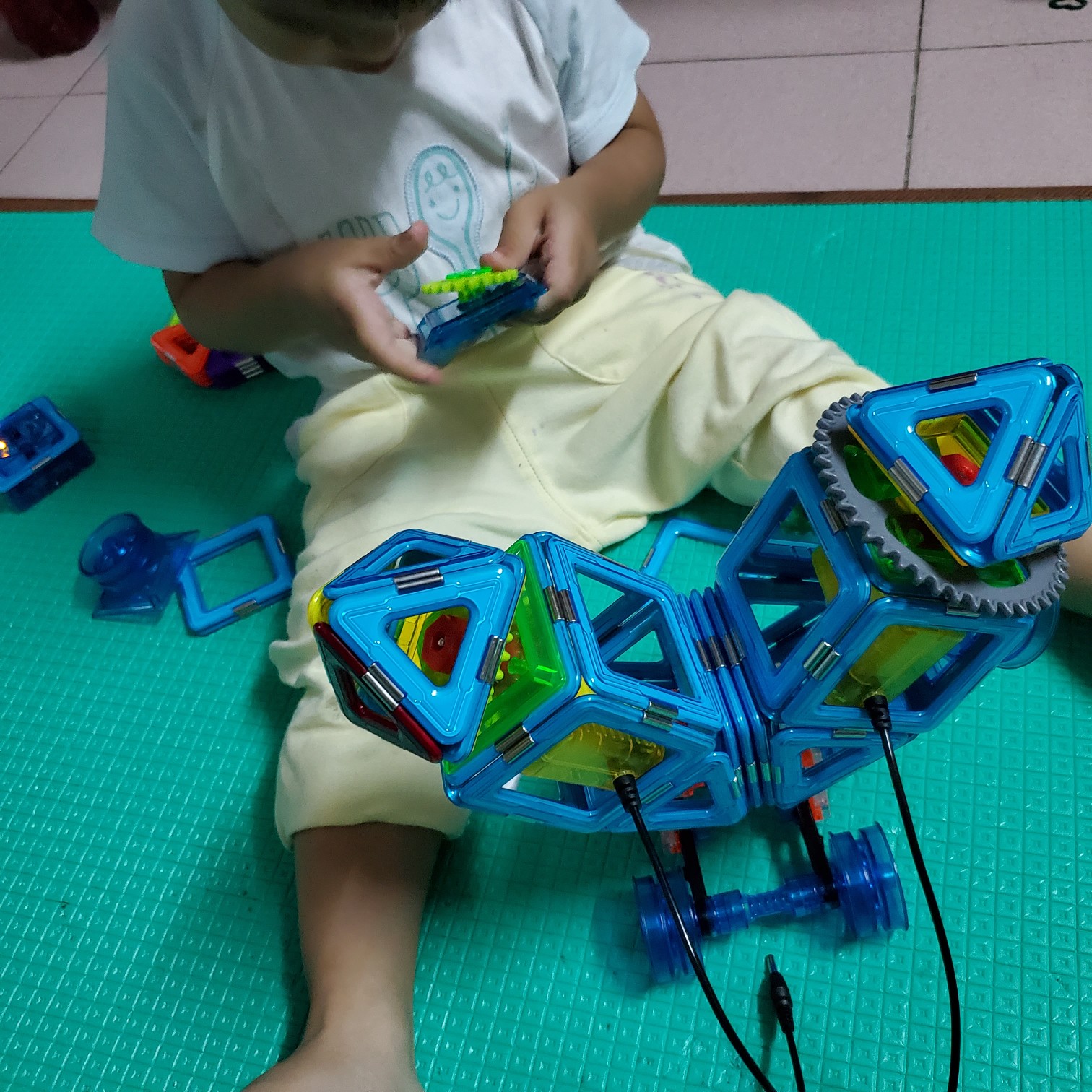 添添小朋友在参与MAGFX-机变酷卡未来工程师活动 这是添添的第36 磁力片作业【外星双头机器人】。 让添添认识,方法。!