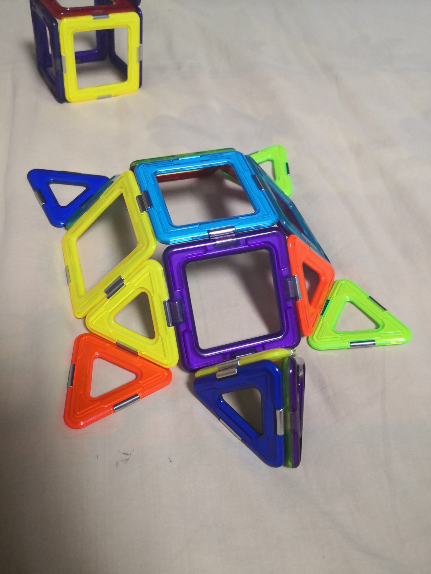 这是我在机变酷卡STEAM教育学院的第【27】个【磁力片】作品。一摆一提拉,立马成型,太好玩啦!