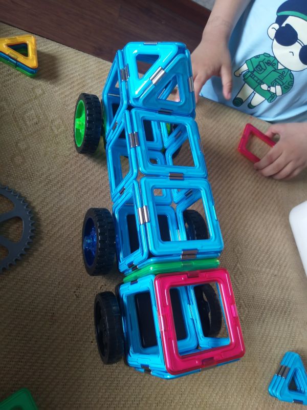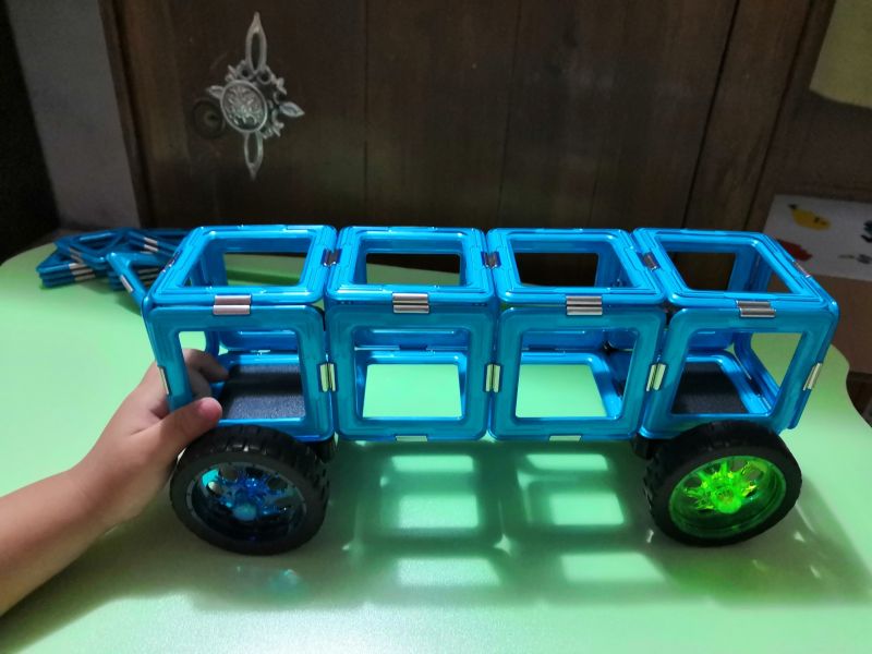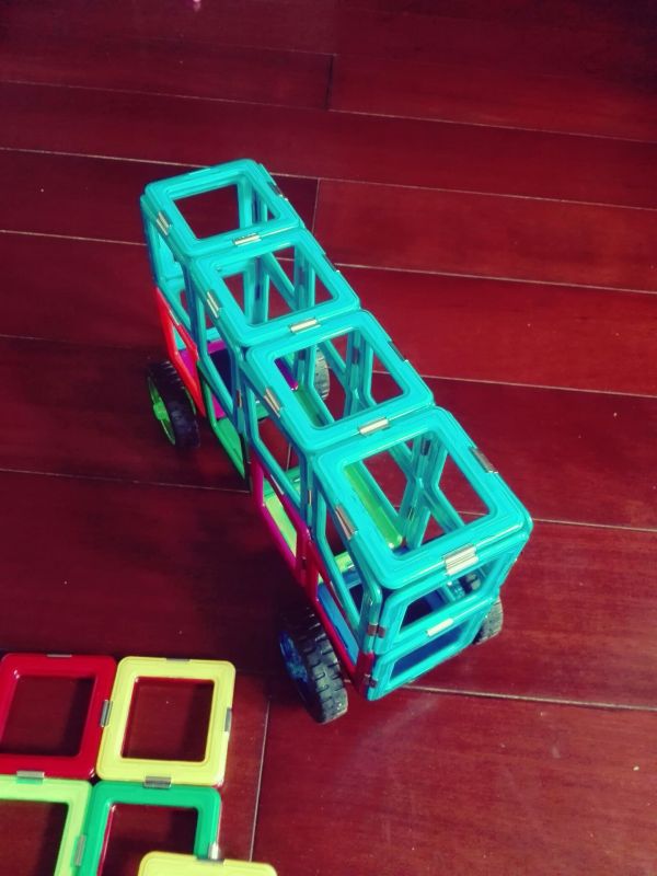 双层巴士:小朋友最开始玩磁力片时,就爱拼这样的车,单层的双层的,长的短的