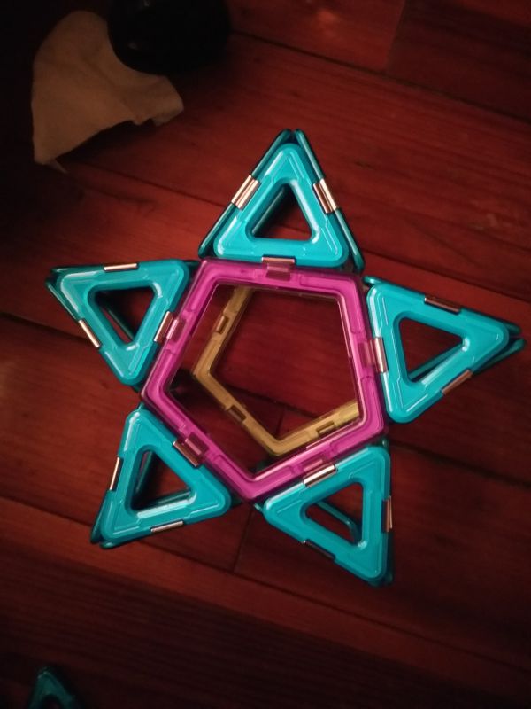 我在参与MAGFX机变酷卡53半年班第32课,五角星。是用等边三角形和正方形和五边形组合而成。