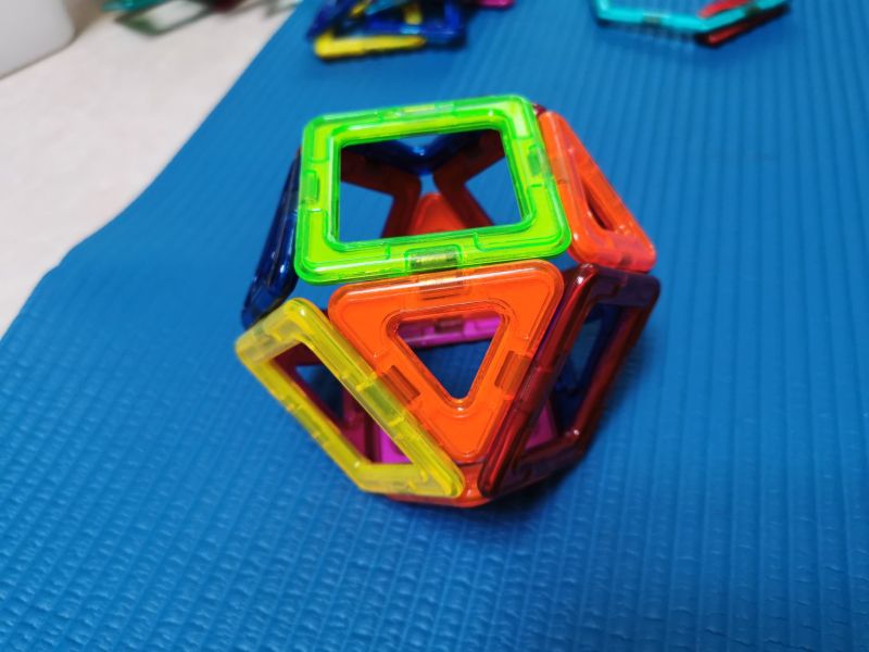 2、学习正方三角小球的立体提拉技巧,并与其他球体的搭建进行对比,加深对球体的认识;
