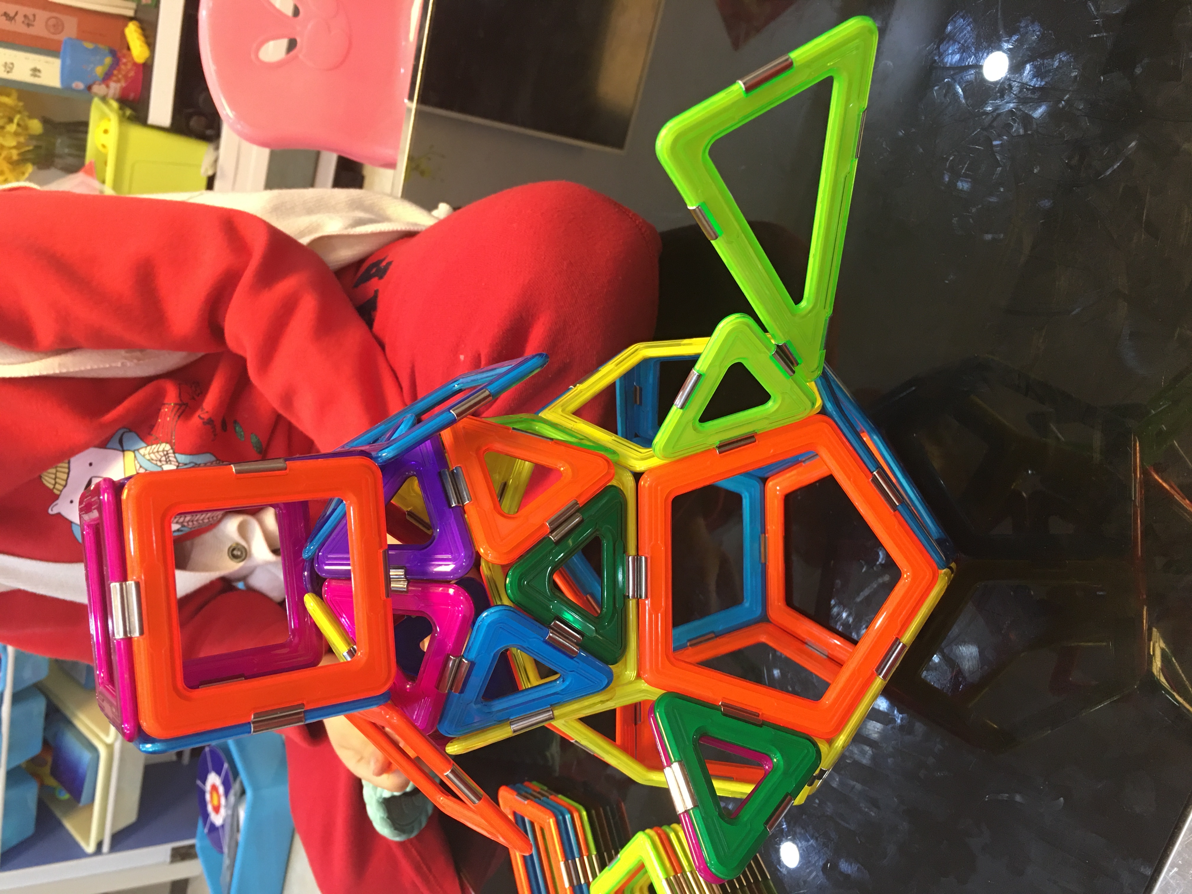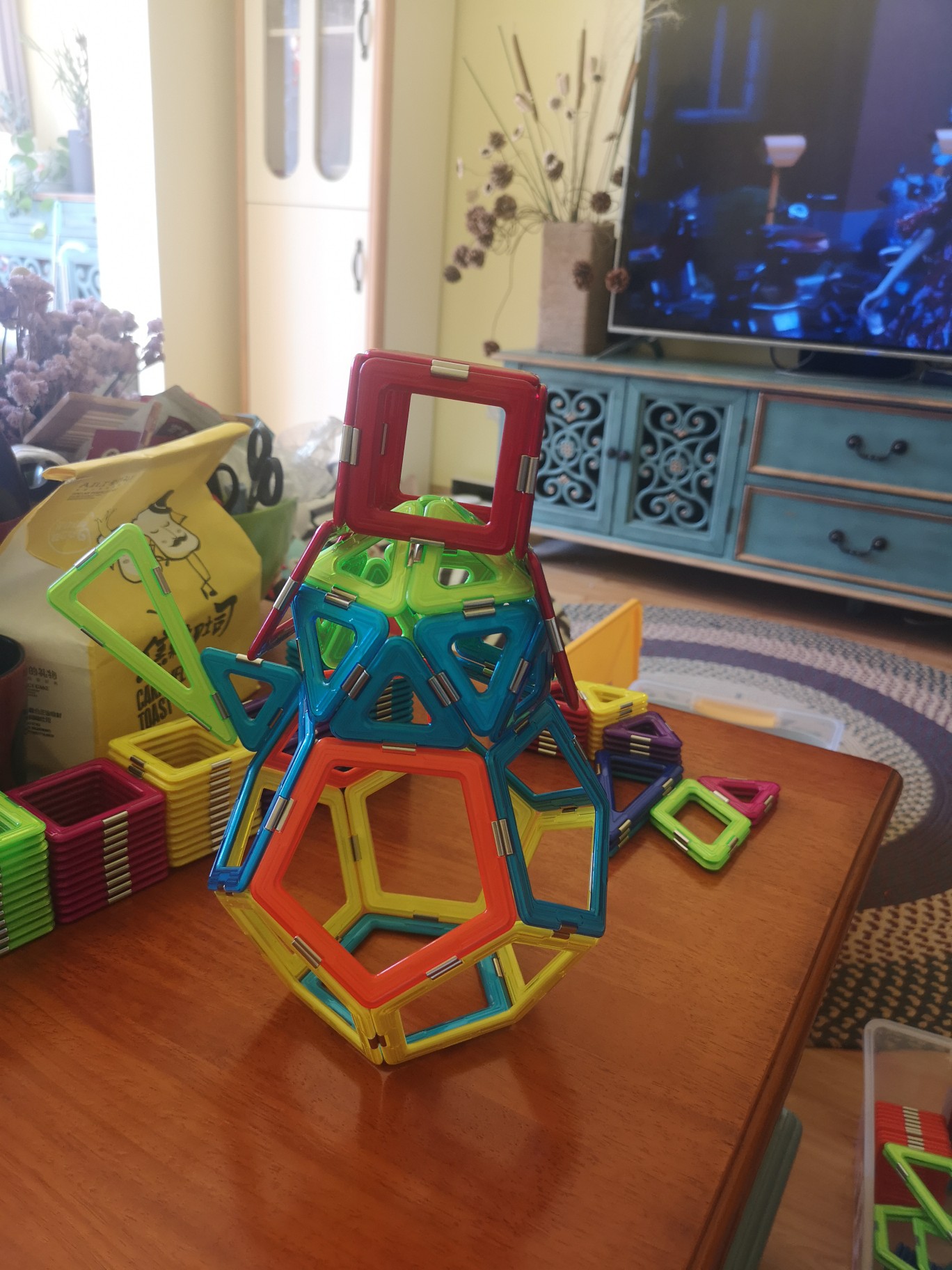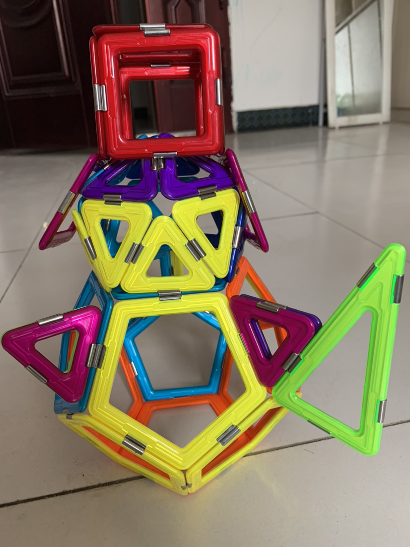这是我的第【42】个磁力片作业--【雪人⛄️ 】原本只想教弟弟做个经典的正方三角阿基米德球,结果弟弟来创意了,把两个球叠在一起加了装饰变成机器雪人啦,弟弟好棒呀ヾ ^_^♪