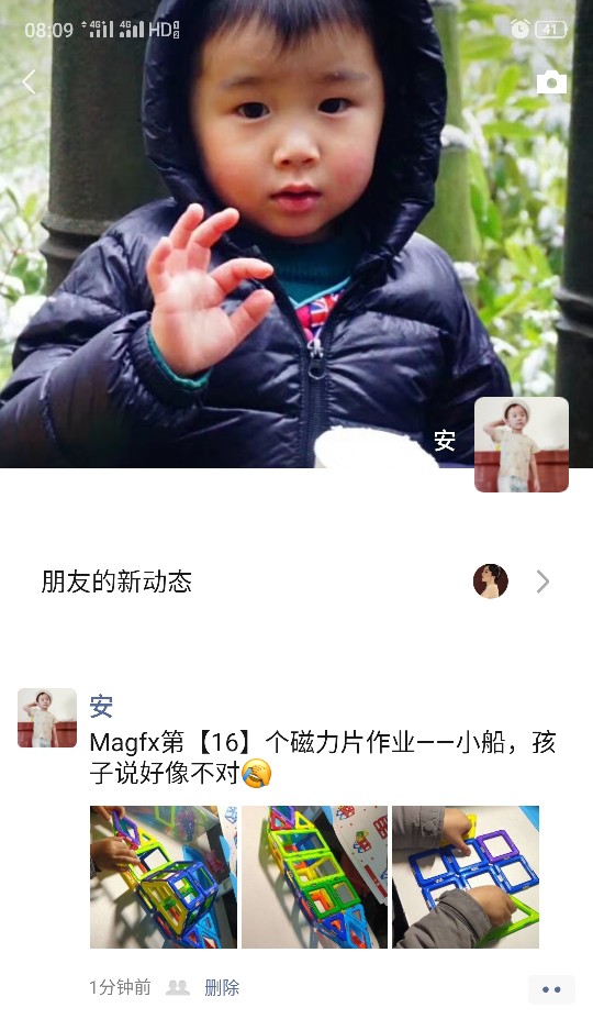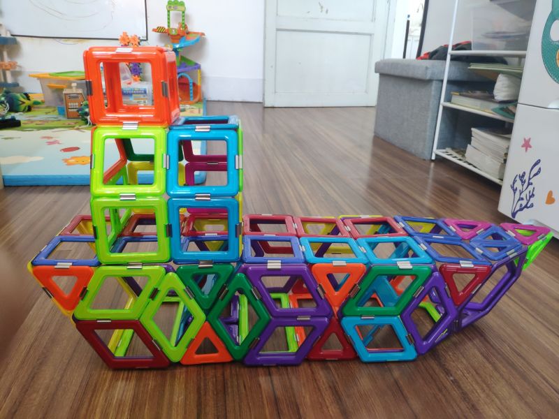 我的第6个磁力片作品,小小的船儿水中游宝宝看着小船哼起来了歌曲!棒棒哒!