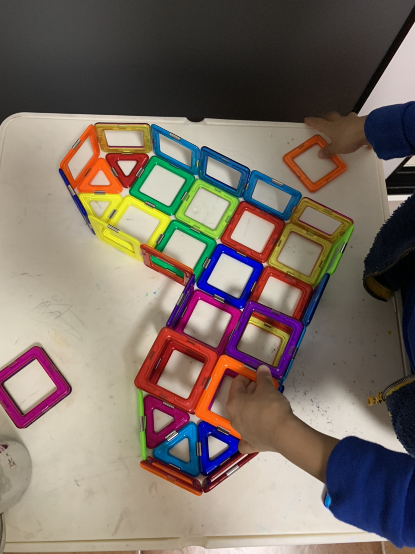 MAGFX机变酷-卡未来工程师公益研学【G-1109班学员】第【49】个作业——【爱心】小朋友又想做爱心,还不想拆上个鸭子的造型,就想法用剩下的磁力片代替。这种与孩子一起合作的方式很好。