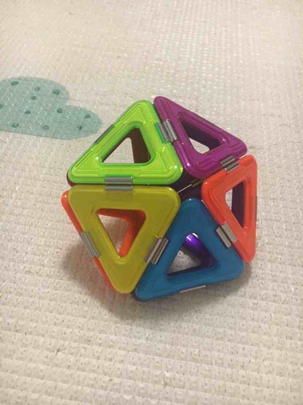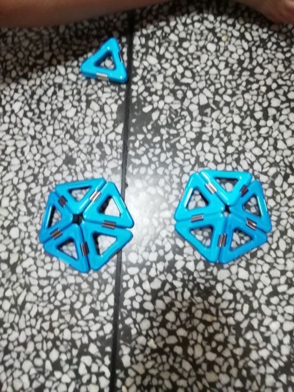 十面体。五个三角形是一面,十个三角形就拼成了十面体。