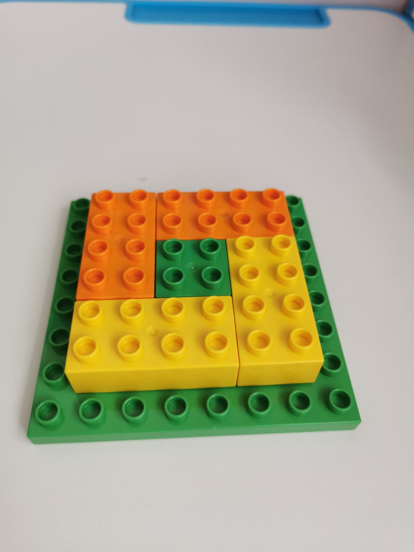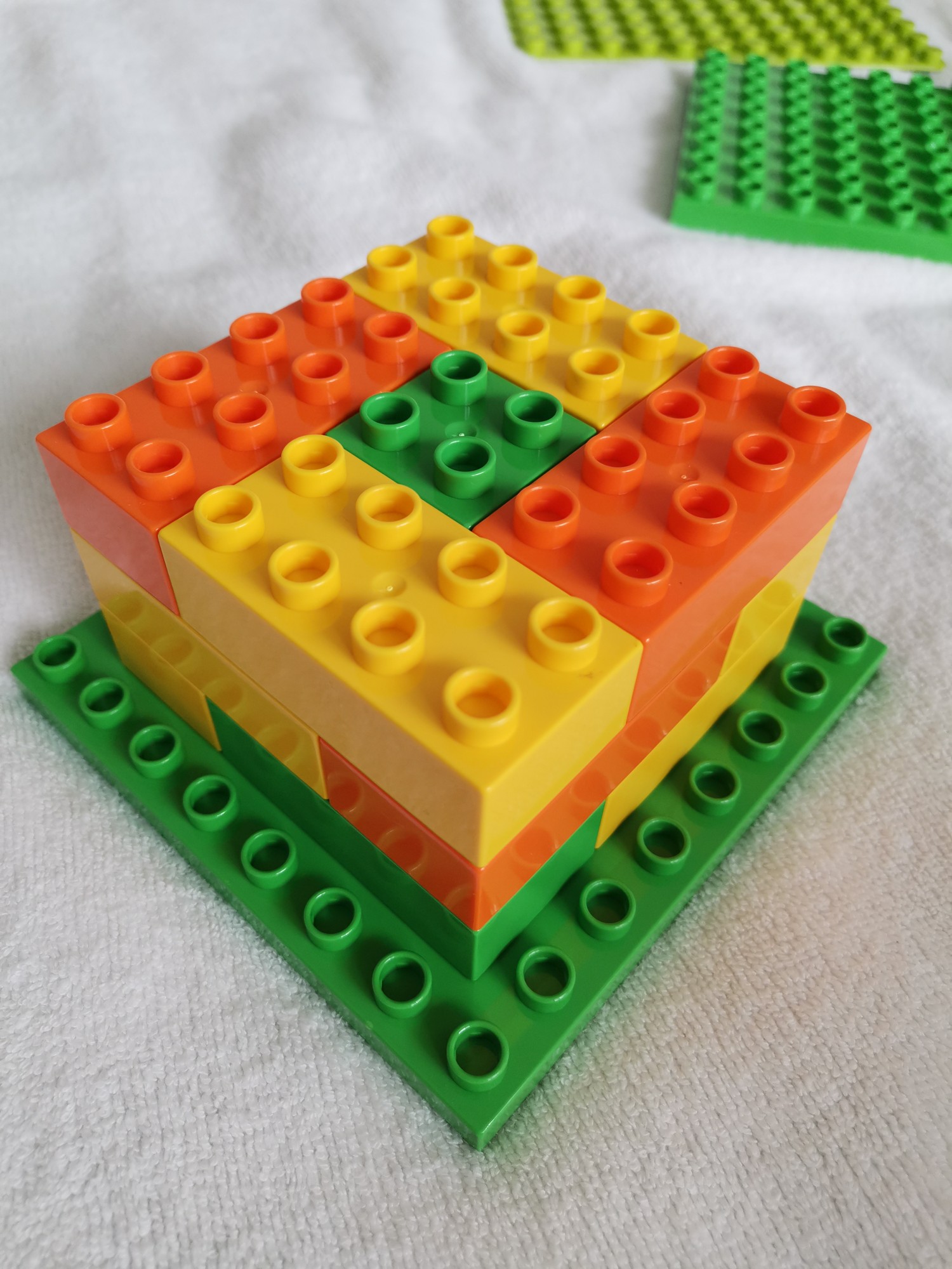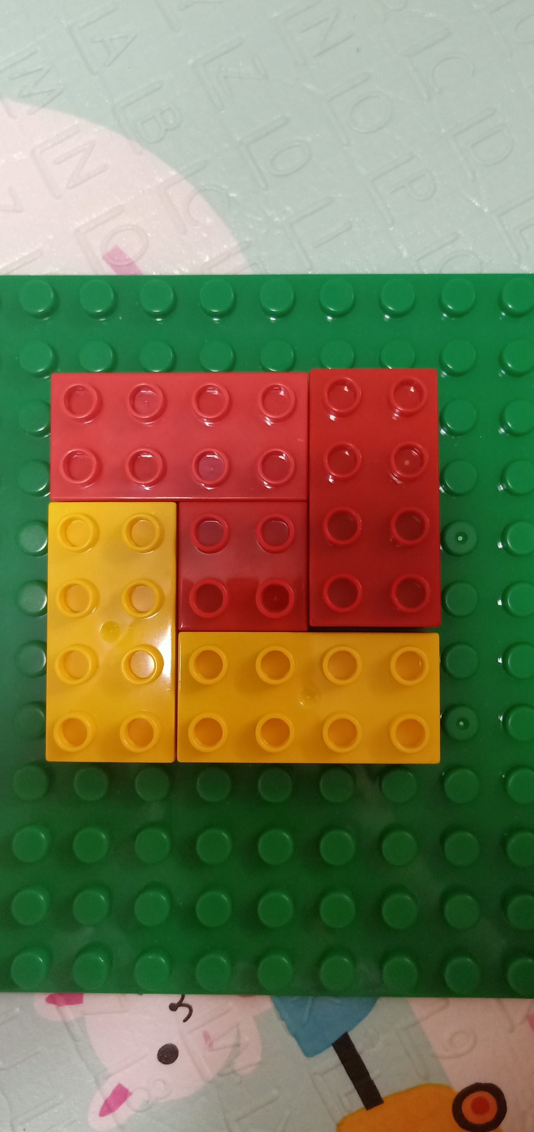 使用长方形方砖一圈一圈的互锁围起来,中间用正方形方砖填充起来,形成一个实心的正方体。