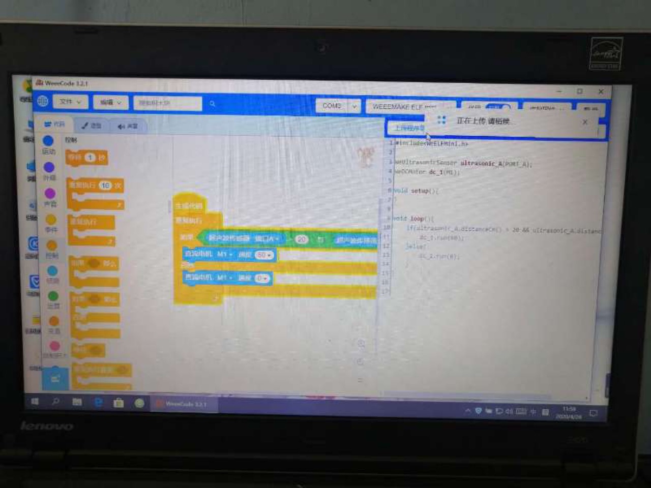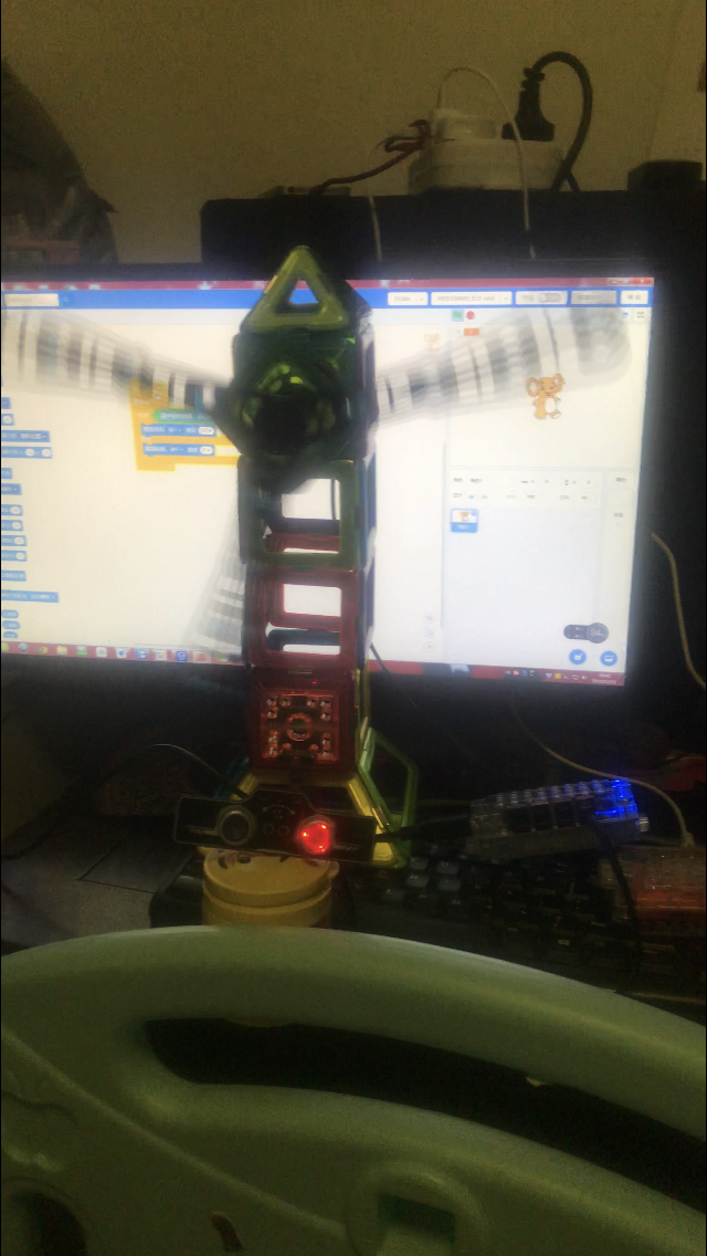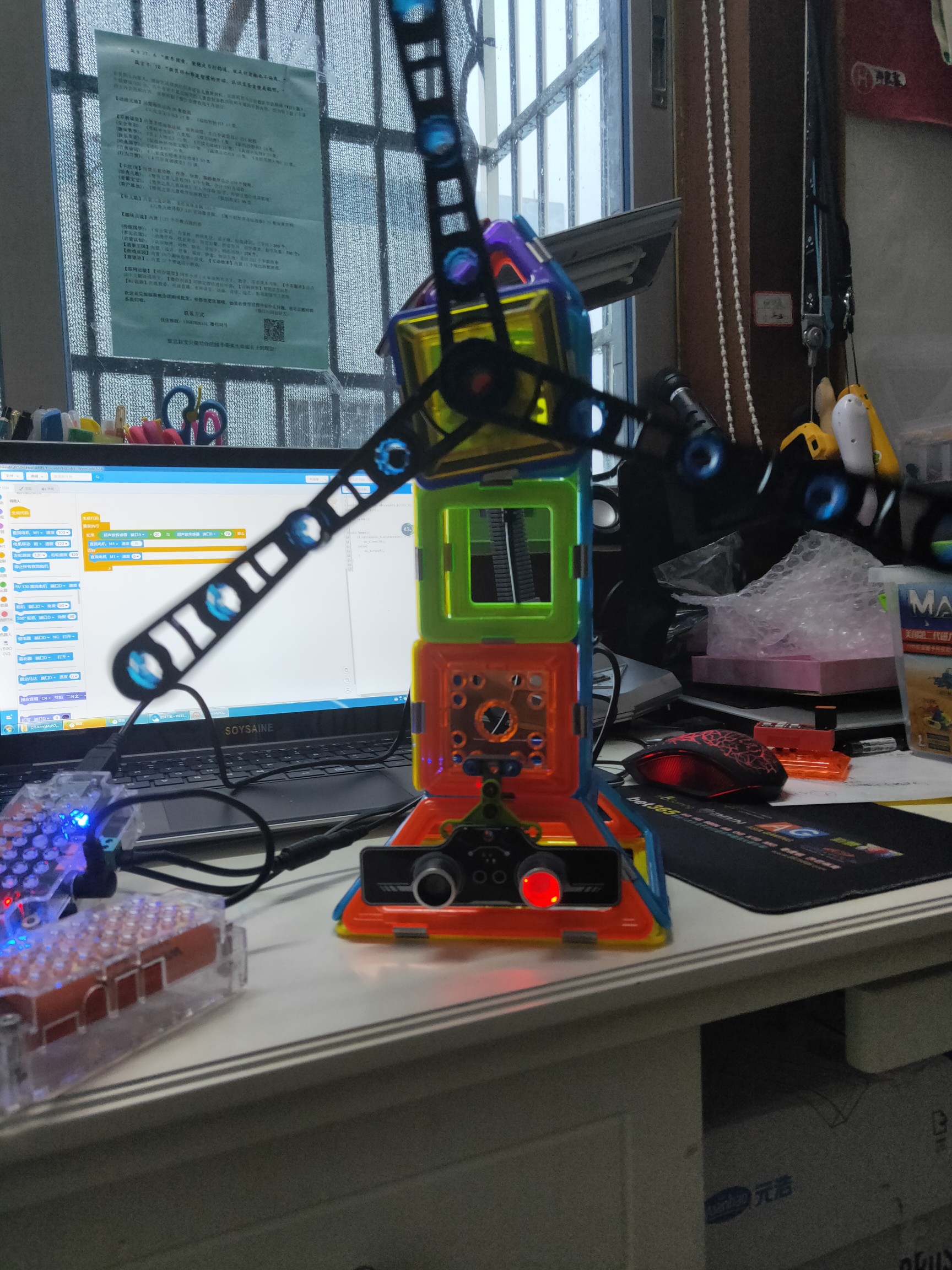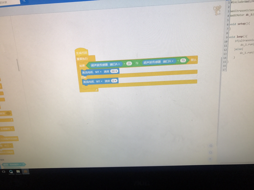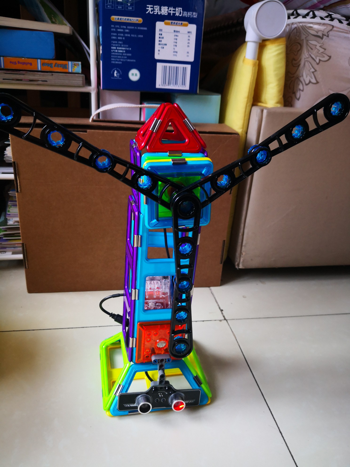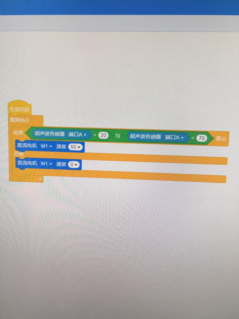 还是没有解锁iPad,继续老电脑扛一扛吧~本课也是应用到了超声波传感器,用了小颗粒安装到磁力片上。当孩子靠近电风扇且在安全距离,电风扇转动,当离的太近,电风扇停止转动。