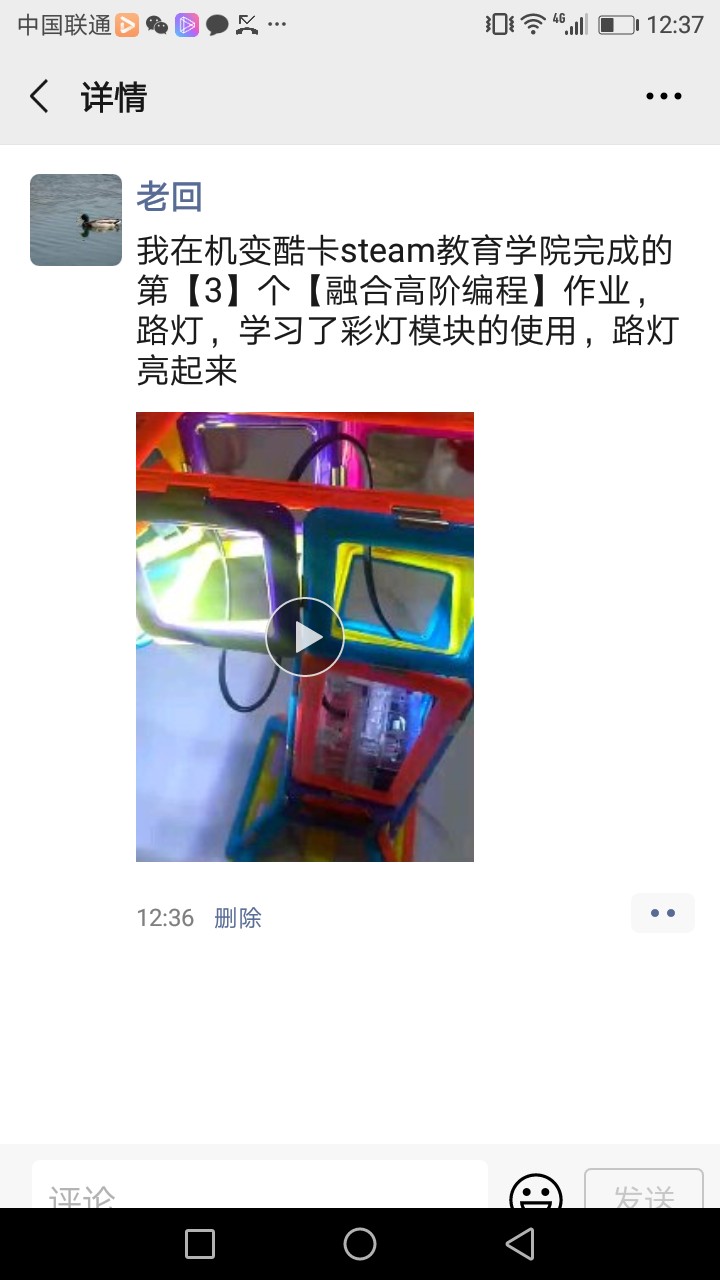 我在机变酷卡steam教育学院完成的第【4】个【融合高阶编程】作业,路灯,学习了彩灯模块的使用,路灯亮起来