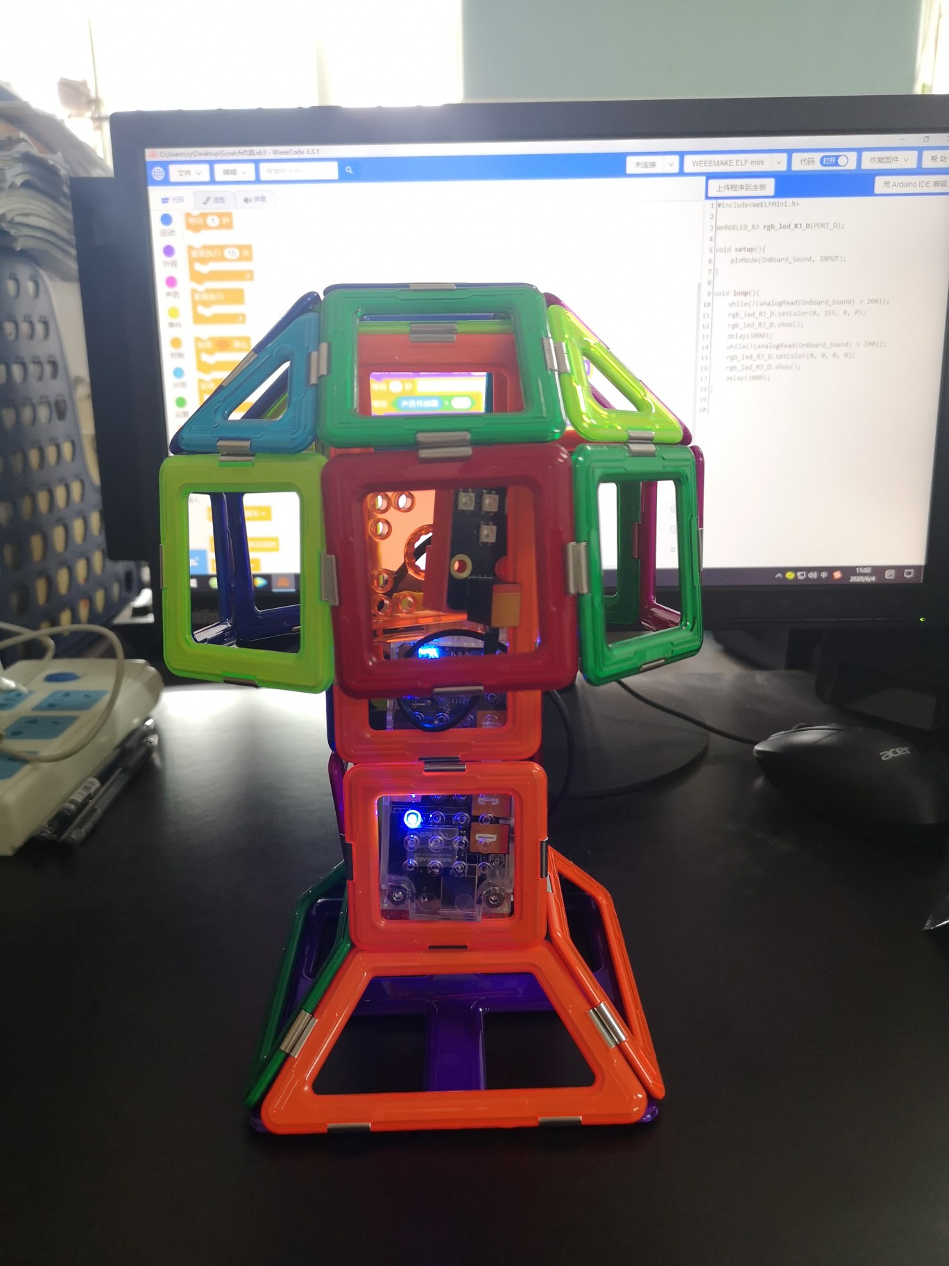 我的第【4】个编程作业,声控灯,太好玩了,高科技哈哈