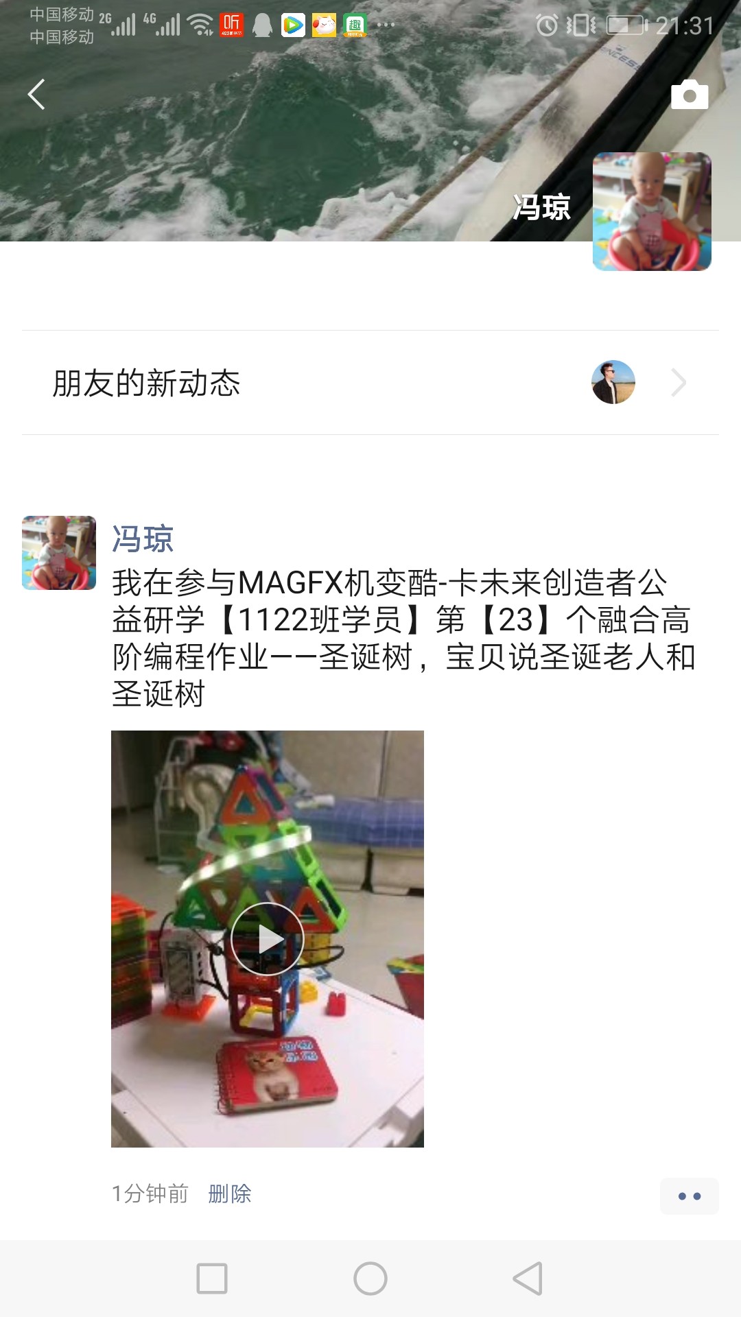 我在参与MAGFX机变酷-卡未来创造者公益研学【1122班学员】第【23】个融合高阶编程作业——圣诞树,宝贝说圣诞老人和圣诞树