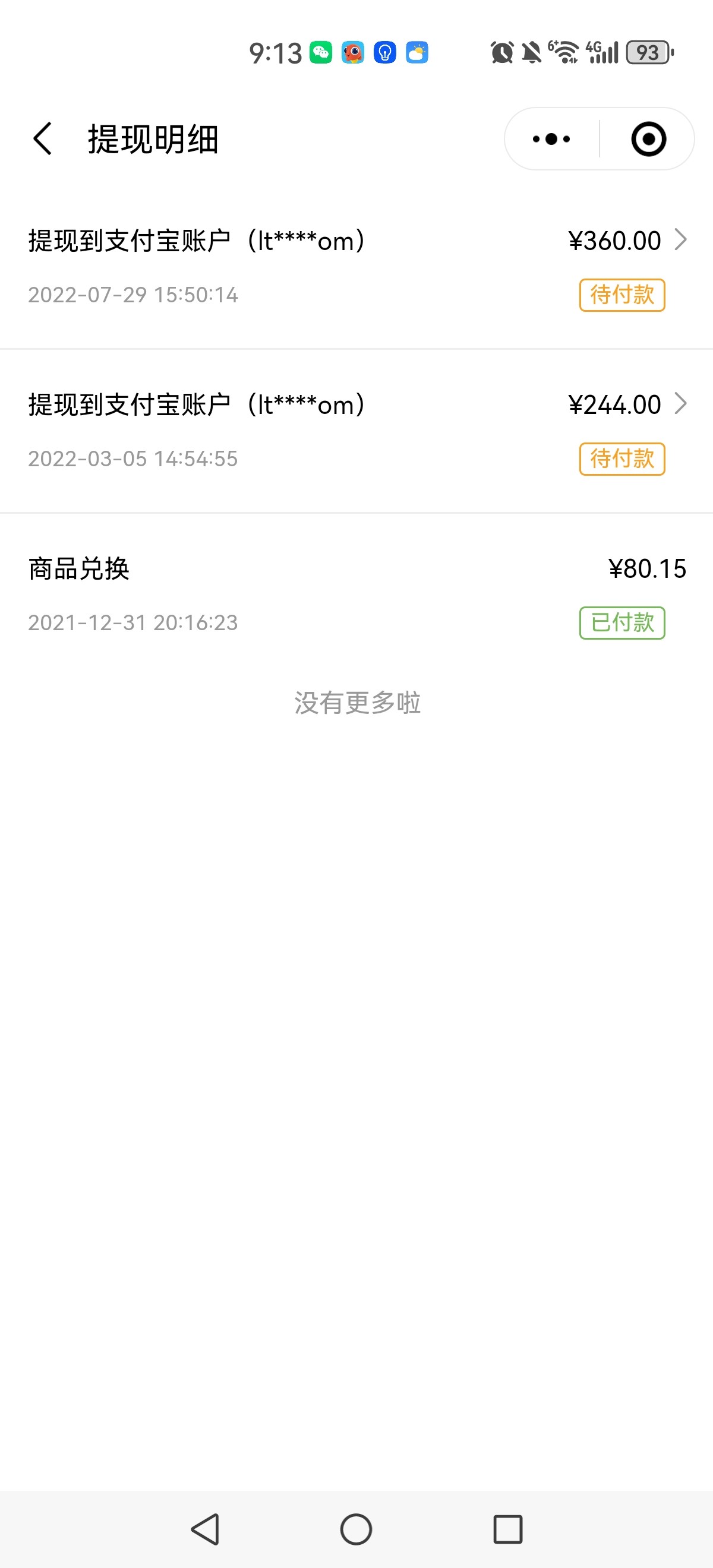 没有返现的金额